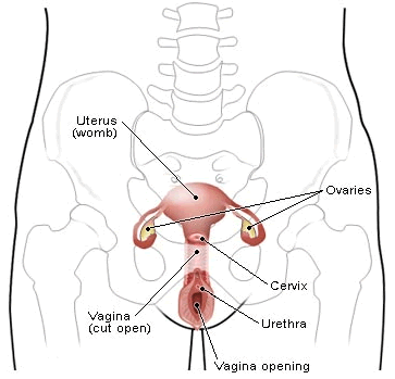 a woman's lower abdomen, between the bladder