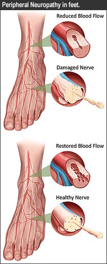 Peripheral neuropathy, usually affecting the feet, is common among people with HIV. This is still the case even though the antiretroviral drugs most strongly associated with nerve damage -- the "d-drugs" stavudine (d4T, Zerit), didanosine (ddI, Videx), and zalcitabine (ddC, Hivid; withdrawn from the market in 2005) -- are no longer widely used in the U.S.